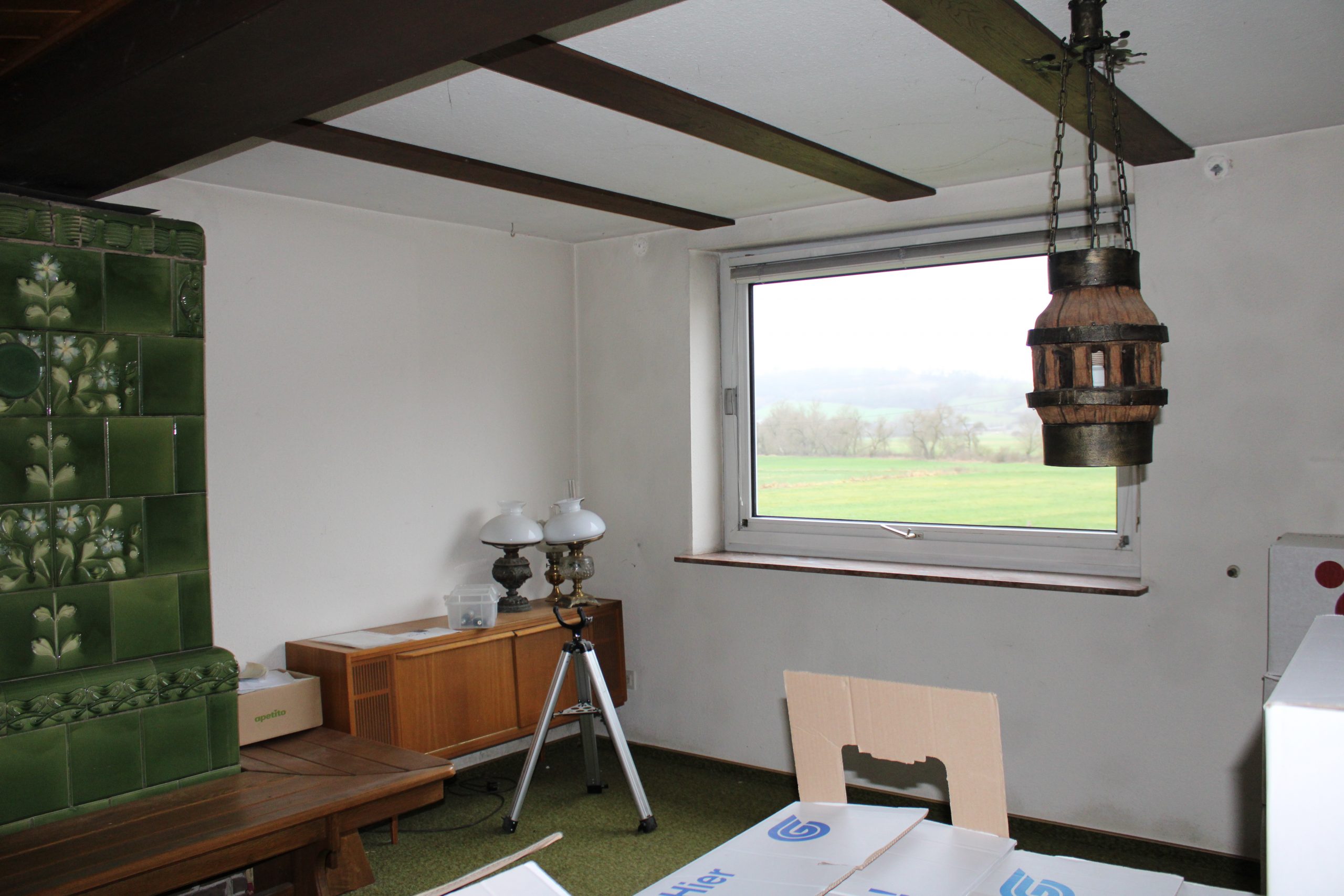 Im Erdgeschoss finden Sie ein Bad mit Dusche, die Küche, einen großzügigen Wohnbereich und ein weiteres Zimmer, welches sich für ein Arbeitszimmer, Esszimmer aber auch Schlafzimmer eignet. Im Wohnbereich finden Sie einen Kachelofen und einen wunderbaren Blick ins Grüne, das nicht zugebaut werden kann, weil es unter Naturschutz steht.