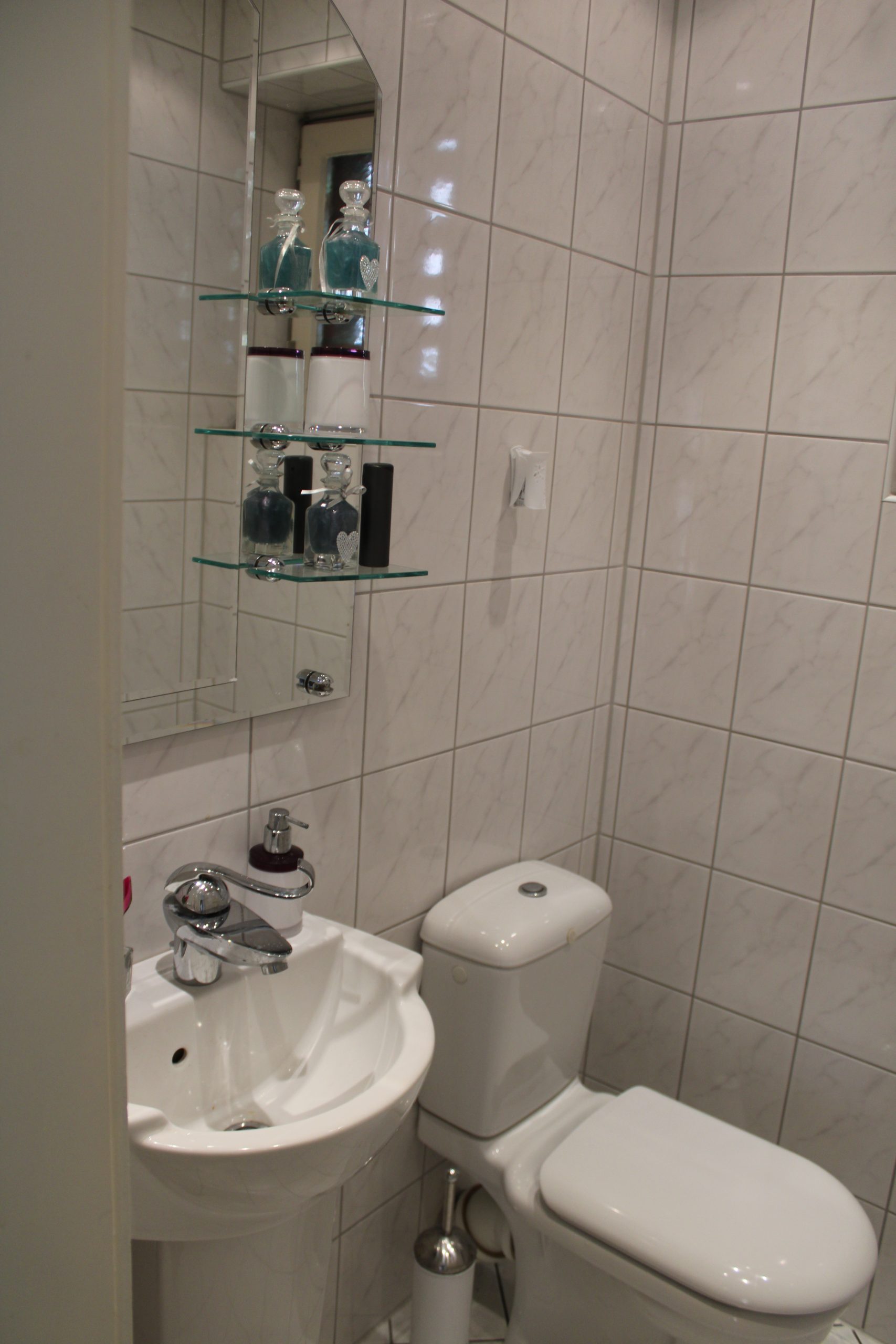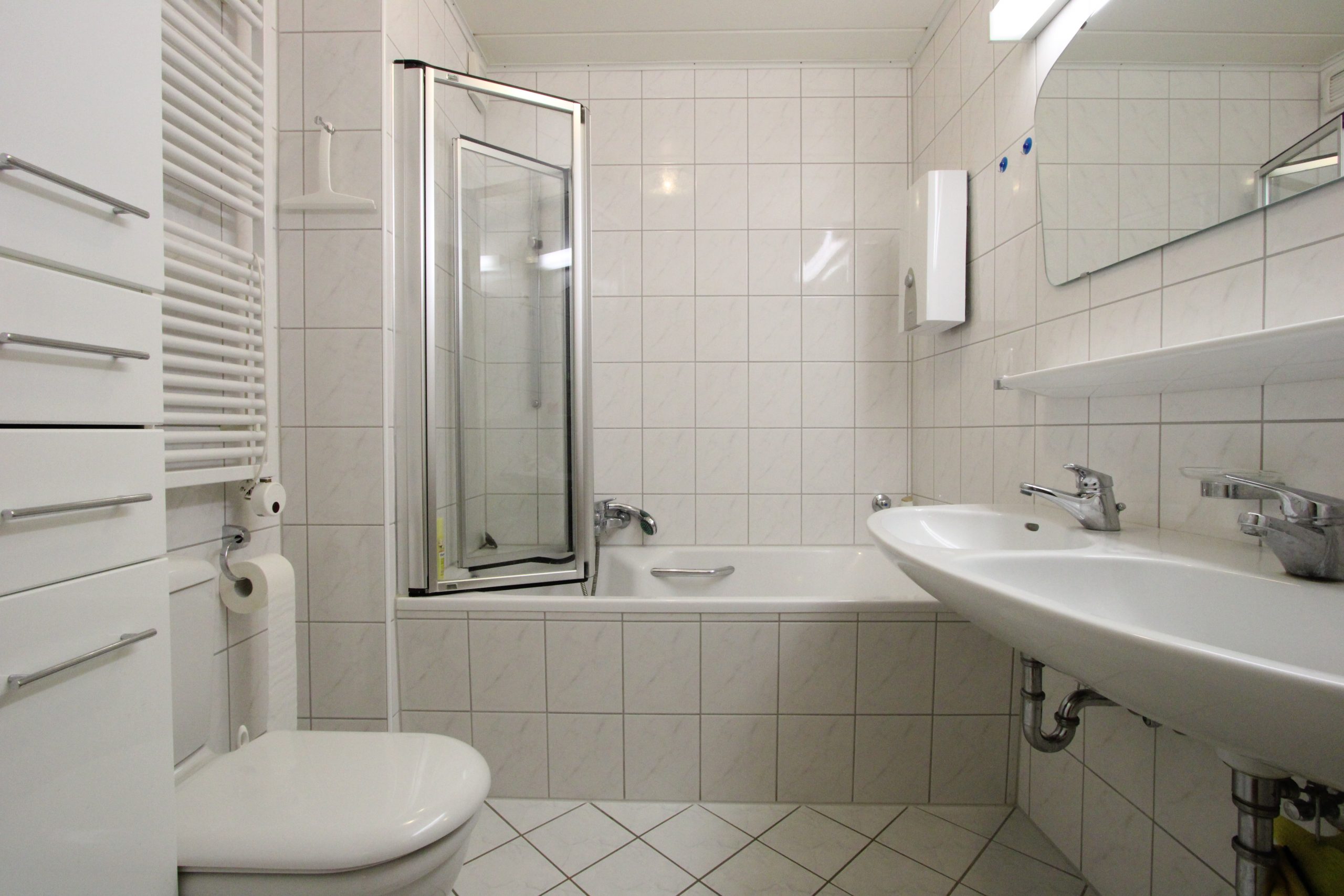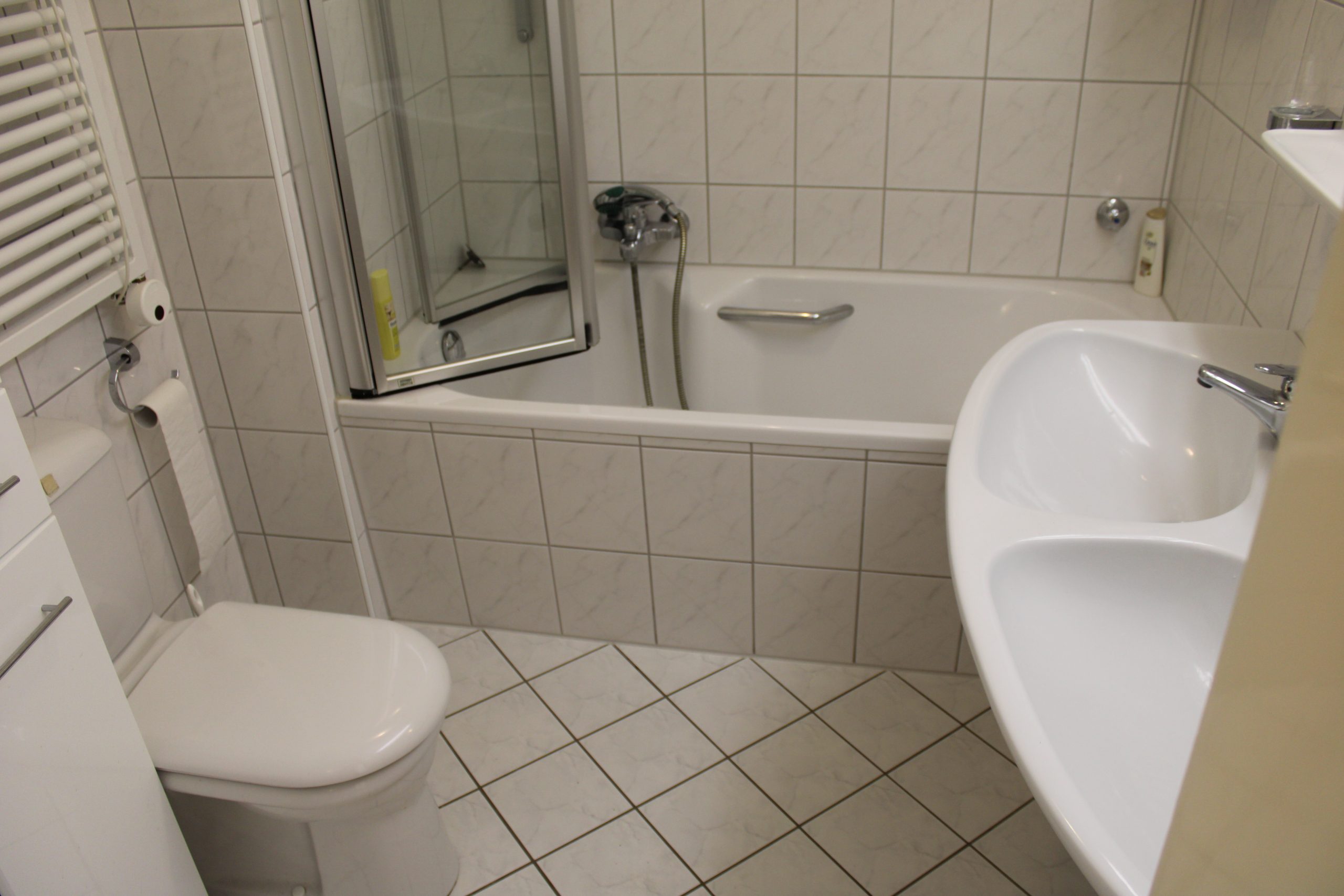 Die Bäder sind deckenhoch gefliest und in einem neutralen Weiß gehalten. Diese sind vor 10 Jahren erneuert worden.