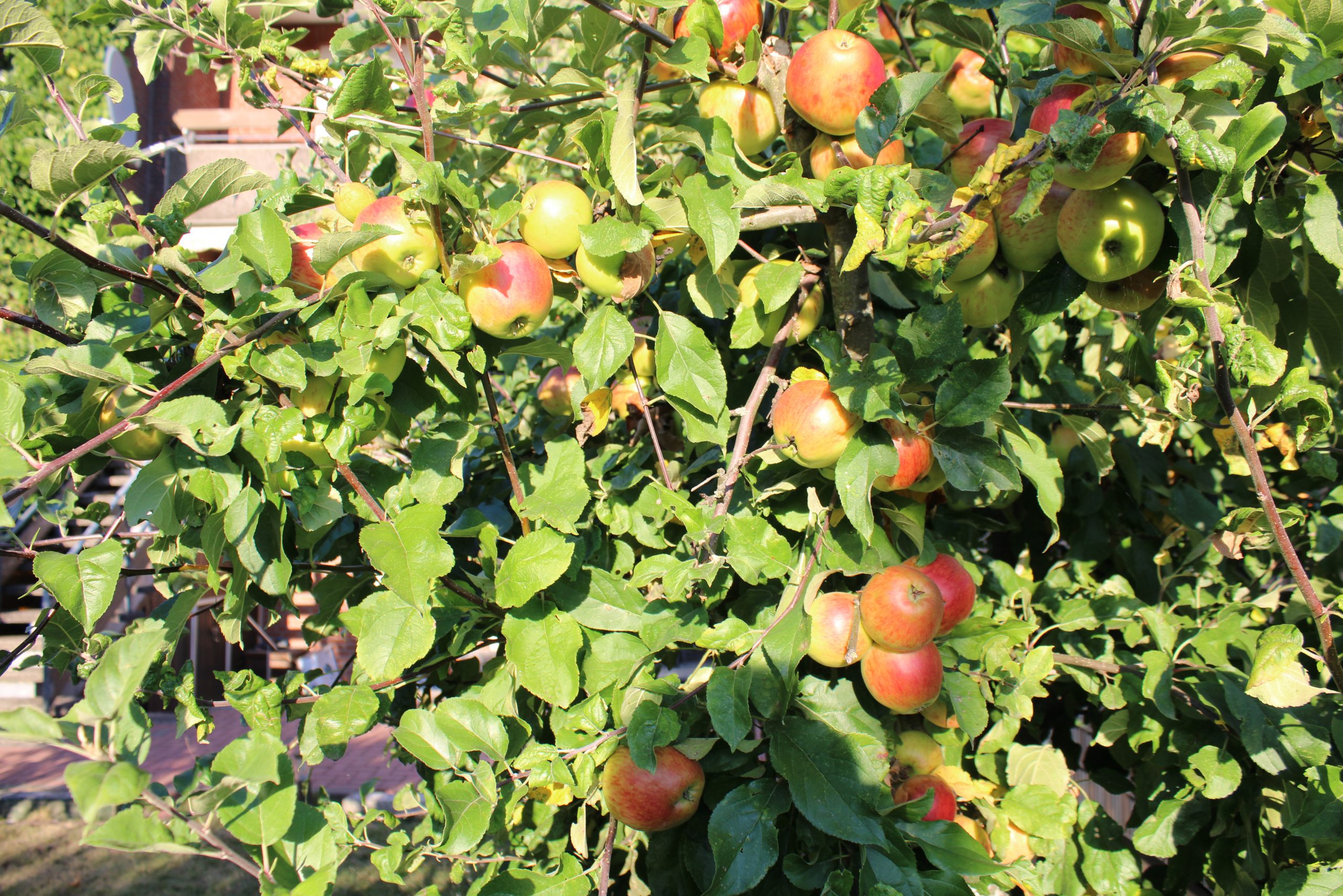 Im Garten sind verschiedene Obstbäume, die jedes Jahr eine gute Ernte abgeben. Genau das richtige für Naturliebhaber.
