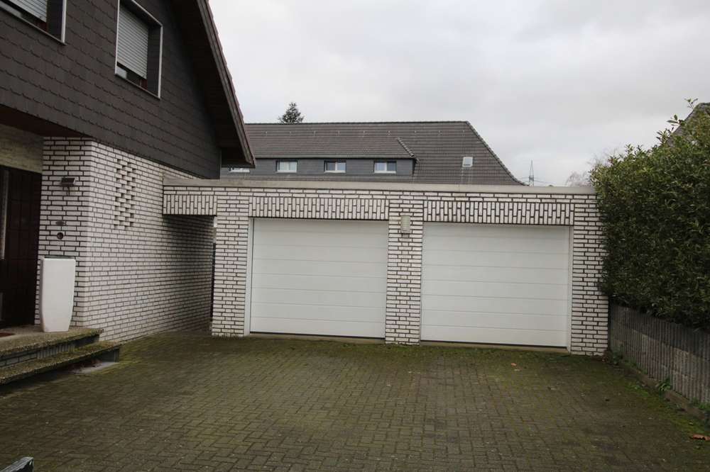 Zum Haus gehört noch eine große Doppelgarage direkt neben dem Hauseingang und ein kleiner Hof vor dem Haus