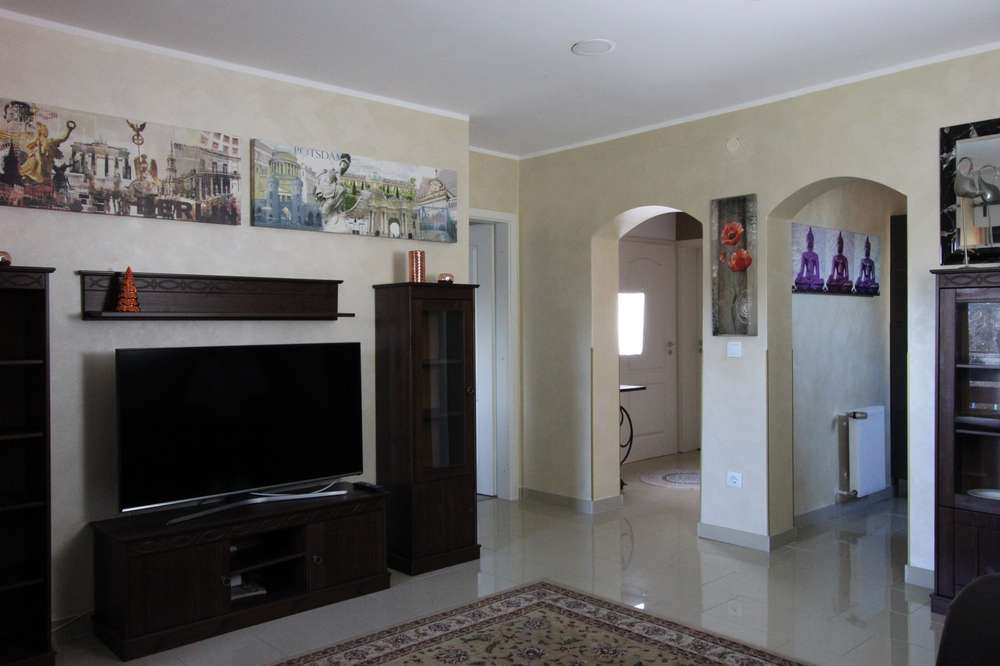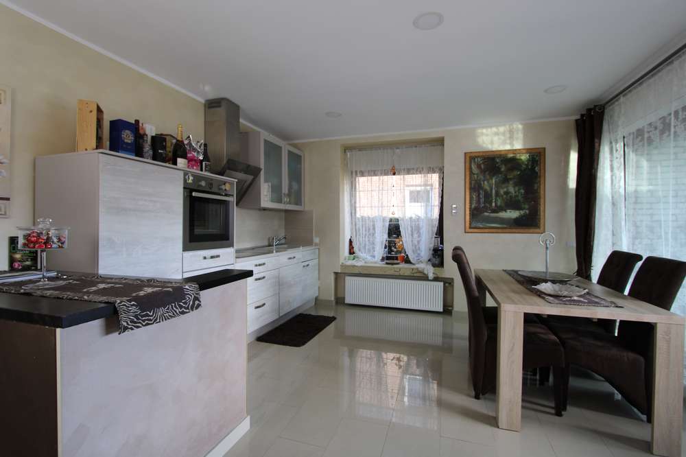Das 1973 gebaute Haus wurde im Jahre 2015 modernisiert, umgebaut, saniert und renoviert. Die hochwertigen Fliesen, mit denen die Böden bis auf die Schlaf- und Kinderzimmer ausgestattet sind, sind zeitlos schön, pflegeleicht und sehr beständig. In den Schlaf- und Kinderzimmern liegen Laminatböden in Holzparkett-Optik. Die Wände sind verputzt und mit einem geschmackvollen Farbanstrich versehen. Die Küchen sind mit modernen Geräten und hochwertigen Möbeln ausgestattet. Das große Bad im Obergeschoss ist deckenhoch verfliest. Die sparsame Gas-Zentralheizung wurde vor knapp 3 Jahren komplett erneuert. Die Rollläden im Erdgeschoss werden elektrisch betrieben, im Obergeschoss manuell.